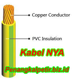 Kabel NYA penangkal petir masih termasuk jenis kebel penghantar penurunan dari sistem instalasi penangkal petir. Karakteristik kabel NYA ialah memiliki satu buah isolator (hal ini bisa dilihat dari kode YA yang ada pada kabel). Isolator pada kabel berfungsi melindungi dari induksi dan loncatan arus antara inti kabel dengan material lain dengan sifat konduktor (penghantar). Dengan adanya dua buah isolator maka induksi dan loncatan dapat diredam dengan sangat kecil hingga nyaris tidak terjadi. Untuk ukuran yang sering dipergunakan dalam suatu sistem pemasangan instalasi penangkal petir yaitu ukuran penampang 50 mm, 70 mm, 90 mm hingga 120 mm. Merk kabel NYA seperti kabel NYA sutrado, kabel NYA supreme, kabel NYA 4 besar banyak di jual dipasaran.